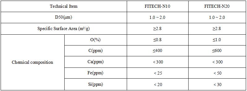Unser hochreiner Aluminiumnitridpulver Merkmale: D50 von 1,0–2,0 µm und spezifische Oberfläche ≥2,8 m²/g, mit extrem niedrigen Verunreinigungen (O ≤0,8–1,0 %, Fe) <25–50 ppm). Es bietet eine ausgezeichnete Wärmeleitfähigkeit und Isolierung und ist ideal für keramische Substrate, Wärmeableitungsmaterialien und elektronische Gehäuse.